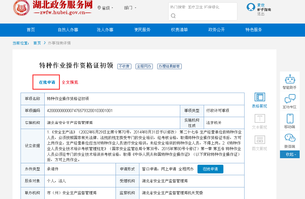 权责清单—搜索 操作资格—选择 建筑施工特种作业人员任职资格认定—新取证申请 或(延期复核)