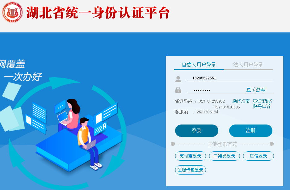 注册完成后自然人登录进入